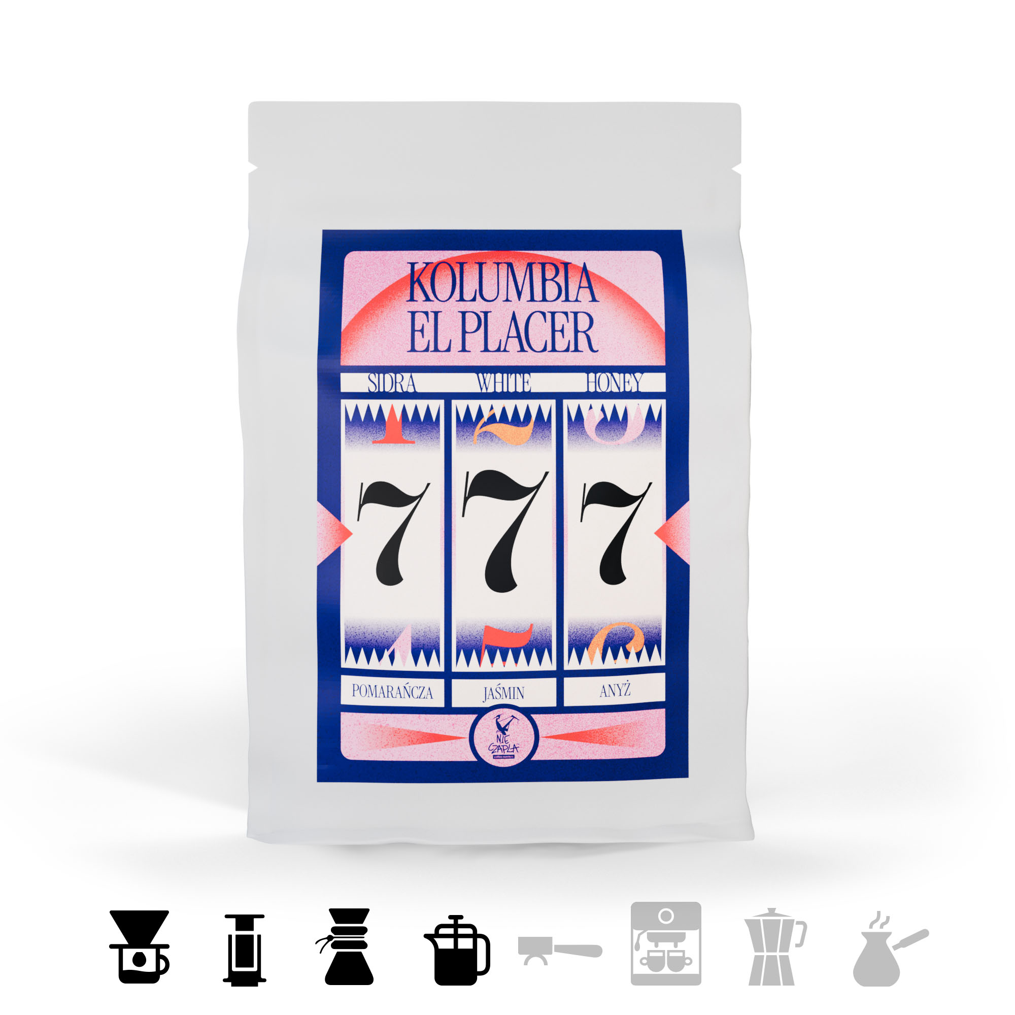Kraj: Kolumbia Region: Huila Farma: Bella Alejandria, El Placer Farms Gatunek: Arabica Odmiana: Sidra Wysokość upraw:1900-2100 m.n.p.m. Obróbka: White honey, with the addition of mucilage. 260 hours fermentation. Profil: pomarańcza, jaśmin, anyż Poziom palenia: jasny (metody alternatywne, nieciśnieniowe) Punktacja wg SCA: 89